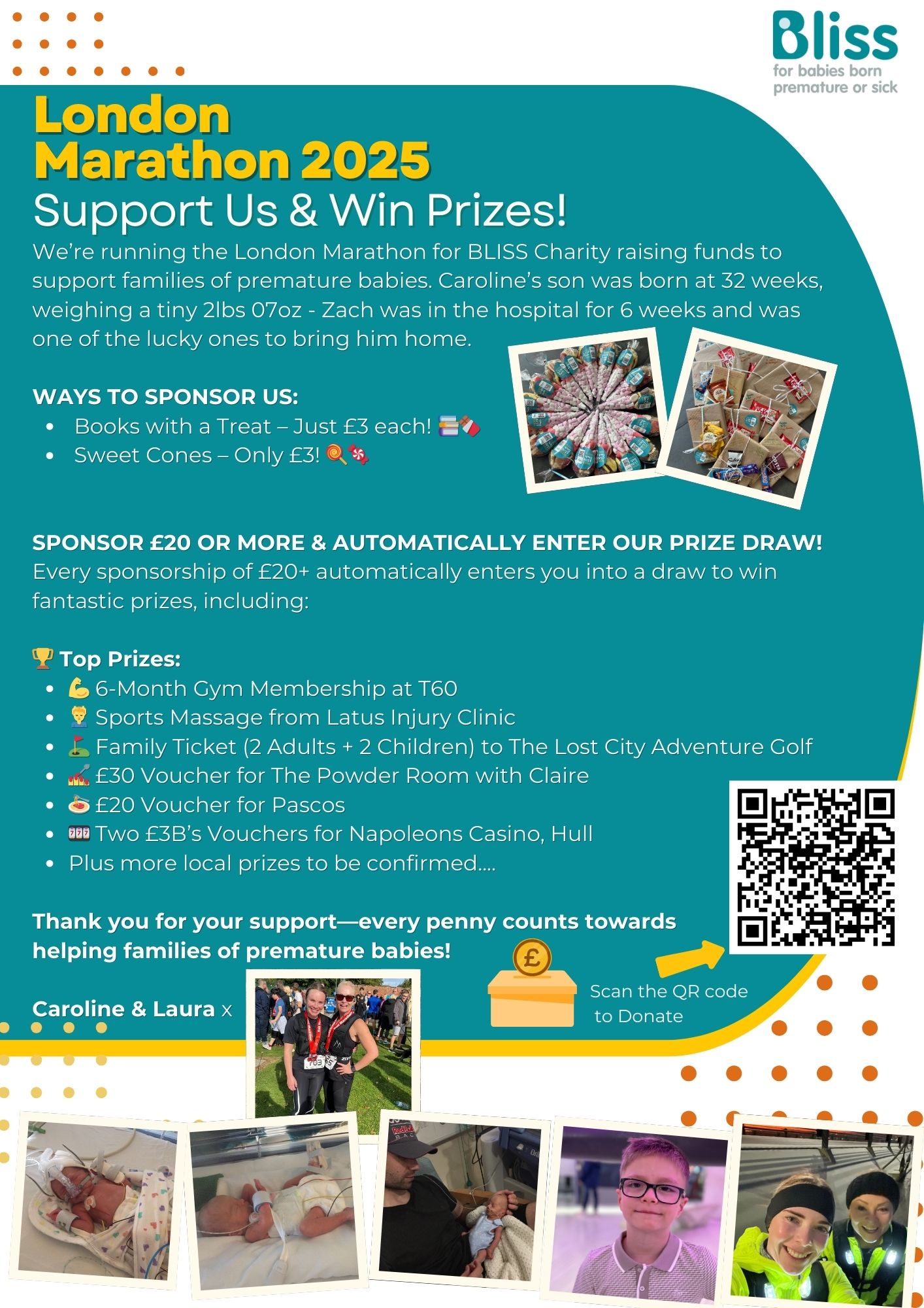 On April 27th, 2025, I’ll be running the London Marathon alongside my good friend Laura Hand to raise money for Bliss, a charity that supports families of premature and sick babies. This cause is deeply personal for me because I’ve experienced firsthand the challenges that come with having a premature baby.
