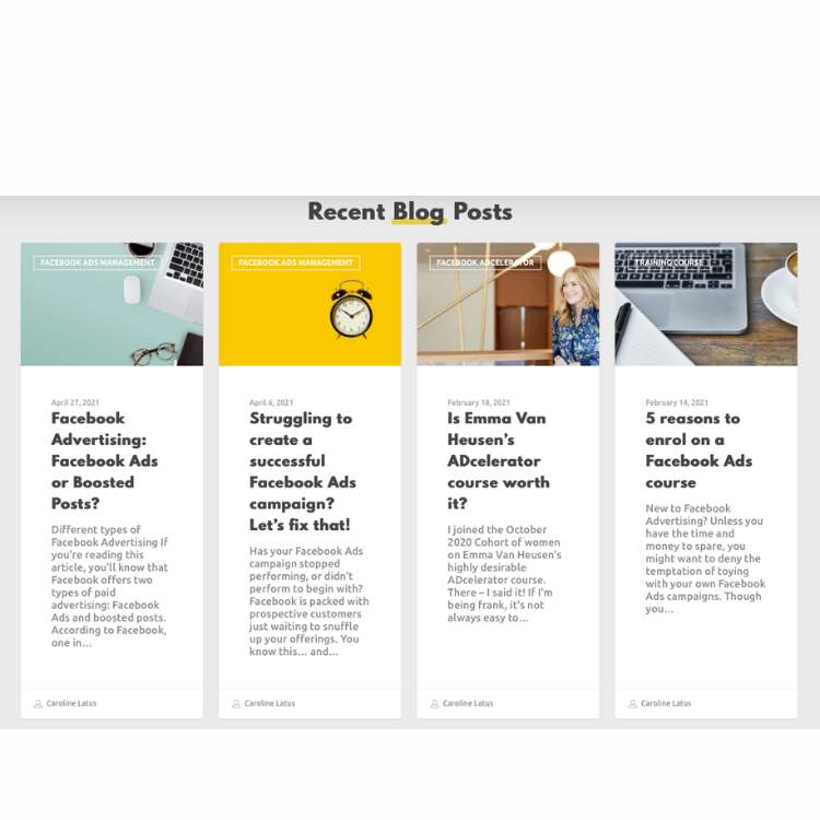 To view our website design, sneak peeks of our photoshoot, and examples of our on-site copy for Caroline Latus Facebook Ad Strategist, view our Project Gallery below.