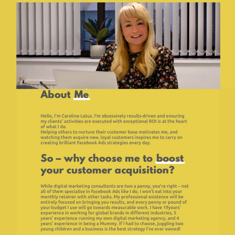 The brief: A friendly & approachable website and on-site copy to reflect Caroline’s personality